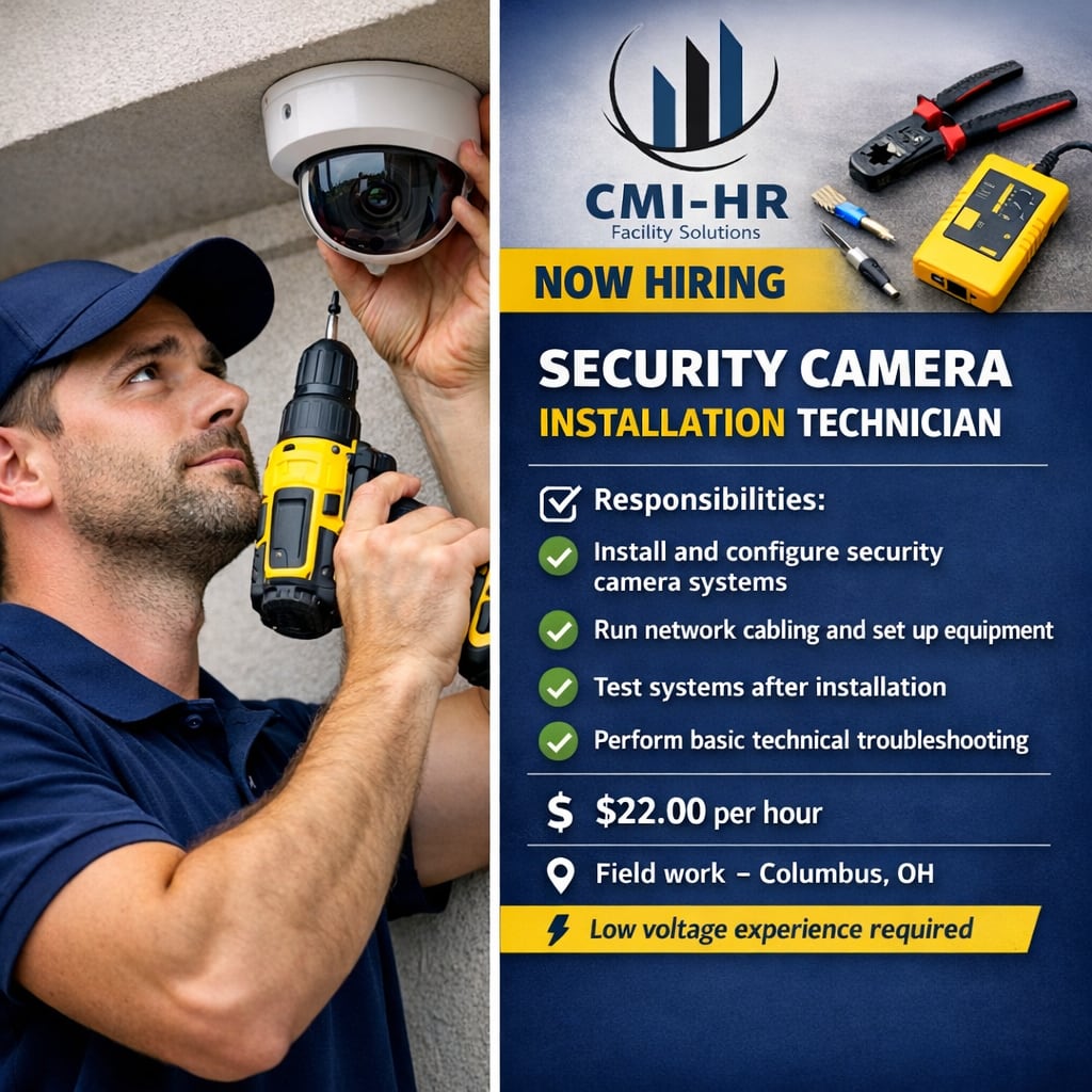 - Requires physical tasks such as pulling cables, climbing into attics, and using lifts.